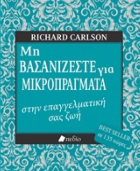 Τι μπορεί να προσφέρει ένα βιβλίο για ενοχλητικά "μικροπράγματα" στον εργασιακό μας χώρο, εν μέ- σω οικονομικής κρίσης, ανεργίας και επαγγελματικής ανασφάλειας; Μήπως θα έπρεπε να θεωρούμε τον εαυτό μας τυχερό μόνο και μόνο επειδή έχουμε δουλειά (όσοι τουλάχιστον έχουμε κάποια απασχόληση) και να μην παραπονιόμαστε για καθημερινά προβλήματα σε σχέση με την εργασία μας; Η αλήθεια είναι ότι όσο και να χαίρεται κανείς που δεν είναι άνεργος, δεν παύει να βασανίζεται από εκατοντάδες μικρά και μεγάλα προβλήματα, τα οποία αποκτούν μεγαλύτερη ένταση στις παρούσες δυσχερείς εργασιακές συνθήκες και προκαλούν ισχυρότερο άγχος. Το βιβλίο του Richard Carlson εξακολουθεί να είναι ένας ιδανικός οδηγός επιβίωσης στον χώρο της εργασίας. Αν και γράφτηκε σε εποχή οικονομικής ευμάρειας, οι προτάσεις του αποδεικνύονται διαχρονικές και πολύ πιο χρήσιμες στις μέρες μας που έχουν χαθεί οι εργασιακές αξίες και οι ηθικές αρχές. "Χωρίς να προσπαθώ να υποτιμήσω τις δυσκολίες που υπάρχουν εκεί έξω, βαθιά μέσα στην καρδιά μου γνωρίζω ότι δεν είμαστε θύματα μιας παγιωμένης κατάστασης" αναφέρει ο συγγραφέας. "Μπο- ρούμε να αλλάξουμε. Η αλλαγή όμως δεν θα συμβεί επειδή ξαφνικά η εργασία μας θα έχει λιγότερες απαιτήσεις ή επειδή θα αρχίσουμε να έχουμε μια πιο εύκολη ζωή. Η αλλαγή πρέπει να προέλθει από μέσα μας". Παρόλο που για τα πραγματικά "σοβαρά" θέματα μπορούν να γίνουν λίγα πράγματα, σε αρκετές περιπτώσεις μεγαλοποιούμε τα μικροπροβλήματα και τα αντιμετωπίζουμε ως καταστάσεις επείγουσας ανάγκης. Εδώ λοιπόν έρχονται οι συμβουλές, συγκεκριμένα εκατό στρατηγικές εκ μέρους του συγγραφέα, γραμμένες απλά, με γνώση και χιούμορ. Ιδού μερικές: "Τολμήστε να είστε χαρούμενοι", "Σταματήστε να προεξοφλείτε την κούραση", "Μει- ώστε ταχύτητα μπροστά στα "σαμαράκια" της ημέρας", "Ξεπεράστε τη διάθεσή σας για γκρίνια", "Μη βασανίζεστε εξαιτίας ενός απαιτητικού αφεντικού", "Ποτέ μη μιλάτε άσχημα πίσω από την πλάτη των άλλων", "Συμφιλιωθείτε με το χάος", "Κάντε κάποιον να αισθανθεί ωραία", "Ξεφουσκώστε λίγο το εγώ σας", "Μη ζείτε για τον καιρό που θα πάρετε σύνταξη". Το ότι θα μάθουμε να μη βασανιζόμαστε για μικροπράγματα στην επαγγελματική μας ζωή, λέει ο Carlson, δεν σημαίνει ότι δεν θα αντιμετωπίζουμε τα ίδια προβλήματα. Απλώς θα τα βιώνουμε τελείως διαφορετικά: Αντί να αντιδρούμε αυτόματα στο κάθε θέμα με αντανακλαστικό αρνητισμό, θα το εξετάζουμε με μεγαλύτερη κατανόηση και άνεση, γιατί όχι και χιούμορ, ενώ τα επίπεδα άγχους θα μειωθούν αισθητά. Το παρόν εντάσσεται στη σειρά βιβλίων "Μη βασανίζεστε για μικροπράγματα" του Richard Carlson, τα οποία έχουν γνωρίσει μεγάλη επιτυχία, καθώς παρέμειναν επί δύο χρόνια στη λίστα μπεστ σέλερ του USA Today και 101 εβδομάδες στην αντίστοιχη λίστα των New York Times, ενώ μεταφράστηκαν σε περισσότερες από 30 γλώσσες και εκδόθηκαν σε 135 χώρες.