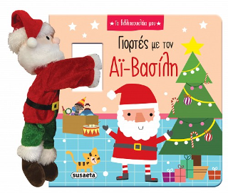 Πάμε μια βόλτα στο σπίτι και στο εργαστήρι του Αϊ-Βασίλη, για να δούμε από κοντά τις ετοιμασίες για την Πρωτοχρονιά! Ένα γιορτινό διαδραστικό βιβλίο με δώρο ένα κουκλάκι Αϊ-Βασίλη που τυλίγεται γύρω από τον καρπό σου!