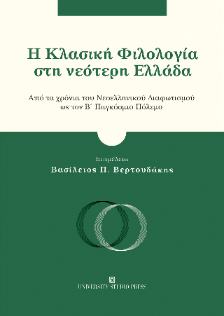 Η ιστορία της Κλασικής Φιλολογίας έχει ιδιαίτερη σημασία για τη χώρα μας. Στην Ελλάδα του 19ου αιώνα υπήρξε —μαζί με τις δύο άλλες μείζονες αρχαιογνωστικές επιστήμες, την Κλασική Αρχαιολογία και την Αρχαία Ιστορία— μια επιστήμη εθνικής αυτοσυνειδησίας, με όλα τα ωφελήματα και όλα τα βαρίδια που τούτο συνεπαγόταν. Παρ’ όλα αυτά η σχετική βιβλιογραφία υπήρξε πενιχρή. Ο παρών συλλογικός τόμος, αφιερωμένος στη μνήμη ενός σπουδαίου κλασικού φιλολόγου, του Αριστόξενου Δ. Σκιάδα (1932-1994), έρχεται να συμβάλει στη σπουδή αυτή. Περιλαμβάνει δεκαπέντε κεφάλαια, το καθένα με τη δική του ξεχωριστή βιβλιογραφία. Θεμέλιο του έργου στάθηκαν οι εισηγήσεις ενός ομόθεμου συνεδρίου που έγινε στη Φιλοσοφική Σχολή Αθηνών τον Απρίλιο του 2024. Ως προς τους συγγραφείς, τη μερίδα του λέοντος έχουν εύλογα οι κλασικοί φιλόλογοι, αλλά συμμετέχουν και ερευνητές από τις ειδικότητες της ιστορίας, της νεοελληνικής φιλολογίας και συγκριτολογίας, της πρόσληψης του αρχαίου κόσμου. Συγκεκριμένα, τα κείμενα του τόμου υπογράφουν οι: Αγγέλα Γιώτη, Βαγγέλης Καραμανωλάκης, Νικολέττα Καναβού, Ιωάννα Καραμάνου, Ελένη Μπεκιάρη, Θεοφάνης Τσιαμπόκαλος, Μιχάλης Δ. Κονάρης, Σταύρος Τσιτσιρίδης, Αικατερίνη Κορολή, Μαριάννα Θωμά, Σπύρος Ι. Ράγκος, Αμφιλόχιος Παπαθωμάς, Μαργαρίτα Σωτηρίου, Στέφανος Α. Τόκος, Βασίλειος Π. Βερτουδάκης. • Ο Βασίλειος Π. Βερτουδάκης είναι Αναπληρωτής Καθηγητής Αρχαίας Ελληνικής Φιλολογίας στη Φιλοσοφική Σχολή του Εθνικού και Καποδιστριακού Πανεπιστημίου Αθηνών.
