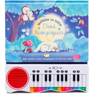 Τραγούδησε 6 αγαπημένα νανουρίσματα καθώς τα παίζεις στο ηλεκτρονικό πιάνο. Μέσα σε αυτό το υπέροχο βιβλίο με τις τρυφερές εικόνες θα βρεις τους στίχους και τη βασική μελωδία γλυκών νανουρισμάτων! Μάθε να παίζεις εύκολα τα τραγούδια Φεγγαράκι μου, λαμπρό, Η καμπάνα του χωριού μας (Frére Jacques) και άλλα – απλώς πάτησε το πλήκτρο που αντιστοιχεί στο χρώμα και στον αριθμό της νότας πάνω από κάθε συλλαβή.