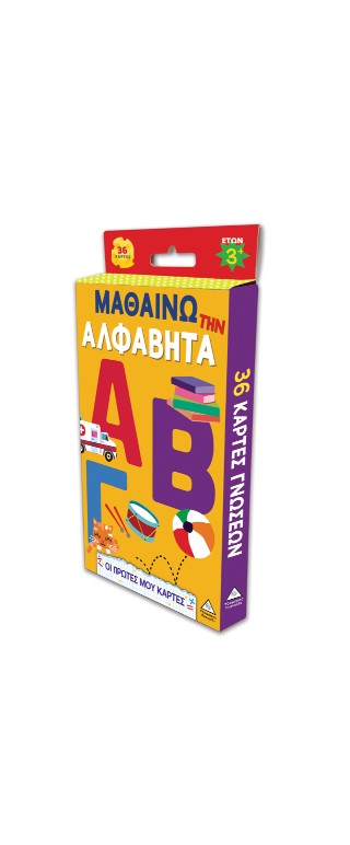 Παίζοντας με αυτές τις υπέροχες κάρτες, τα παιδιά θα μάθουν την αλφαβήτα. Υπάρχει ένα αντικείμενο για κάθε γράμμα, ενώ μερικές κάρτες είναι διπλές για να διευκολύνουν τα παιδιά στην αναγνώριση και την εκμάθηση των γραμμάτων. Οι κάρτες είναι διπλής όψης: στην μία πλευρά αναγράφεται το κεφαλαίο γράμμα και στην άλλη το πεζό. Σε κάθε κάρτα υπάρχει μια εικόνα που τα παιδιά πρέπει να αναγνωρίσουν.