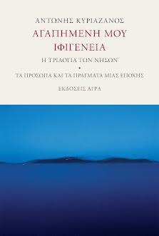 ΟΤΑΝ ΕIΔΕ ΤO OΝΟΜΑ ΤΗΣ ΓΡΑΜΜΕΝΟ στην πάνω σελίδα των δακτυλόγραφων, με ρώτησε : Τί είναι αυτό το πακέτο ; Της απάντησα ότι γράφω ένα βιβλίο και θα έχει για τίτλο την προσφώνηση που της κάνω κάθε φορά που της στέλνω γράμμα ή e-mail : « Αγαπημένη μου Ιφιγένεια ». Έμεινε για λίγο σιωπηλή και πριν φύγει ξαναρώτησε : Και τί υπόθεση έχει ; Τί υπόθεση έχει, αναρωτήθηκα κι εγώ – και ακόμη αναρωτιέμαι. Τί υπόθεση μπορεί να έχει ένα βιβλίο με ήρωες τρία νησιά που αγάπησα και θέλησα να τα συστήσω στη μικρή Ιφιγένεια : Τήνος, Άνδρος, Αμοργός – οι ξερολιθιές τους, τα ξωκλήσια τους, οι σαρδέλες στους τοίχους, η λαξευμένη επιγραφή μιας κρήνης, η Ιερή Γεωμετρία τους, οι ανεμόμυλοι, μια πηγή που μπορεί και κάνει το νερό της κρασί. Ήρωές του και οι ρυθμοί των κιόνων στους δρόμους της Αθήνας – αυτοί οι δρόμοι της Αθήνας. Υπολογίστε επίσης έναν πίνακα του Βερμέερ που συνδέεται με μια φράση του Προύστ, το αγαπημένο μου βλέμμα της Μέδουσας, το μικρό αρχαίο θέατρο του Γυθείου, μια προϊστορική θηλυκή θεότητα στα σπλάχνα της Σαλαμίνας –ναι, και η Σαλαμίνα· ἐκεῖ ἀπὸ όπου ξεκίνησαν όλα. Είναι επίσης και κάτι οδοιπόροι που συνάντησα μέσα μου και όσοι άλλοι συνάντησα στην τροχιά της ζωής μου όσο έγραφα το βιβλίο και με πλούτισαν – μια ελληνική φράση στο γραφείο του Μονταίνιου, φυσικά ο Ηράκλειτος, ο Πλάτων, ο Όμηρος και ο αγαπημένος Αρίστιππος. Και βέβαια είναι και κάτι χρώματα όπως το μπλε και το κίτρινο. Να διασχίζεις νύχτα το Αιγαίο· μια ταινία του Φελλίνι για τη Μαρία Κάλλας και μια άγνωστη αγαπημένη στο καφέ του Χέμινγκουεϋ, αλλά και όλες οι άγνωστες αγαπημένες · ο Κόκκινος κύκλος του Μελβίλ και ο Γραφέας του Μέλβιλ, ποιήματα και μυθιστορήματα, στίχοι στη δίνη του αέρα, οπωσδήποτε ο θεός Παν, ο Κάουφμαν που έκλεισε, τα τζιτζίκια κι ένα χαϊκού. Αλλά και το Τρίτο Πρόγραμμα, τα Parker Jotter, η ευλογία του πρωινού καφέ από το taf – οι ήρωές μου είναι ατέλειωτοι.