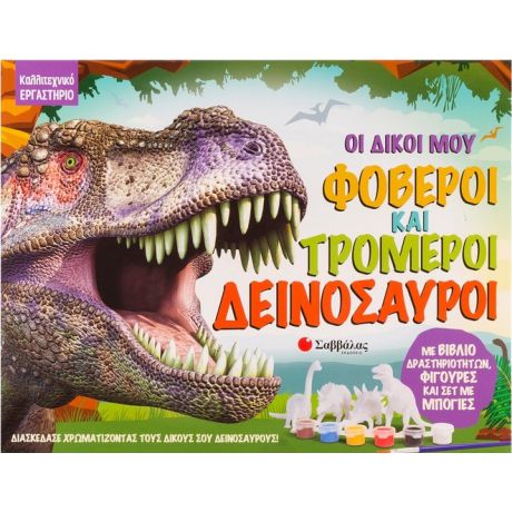 Χρωμάτισε και ζωντάνεψε τέσσερις φοβερούς δεινόσαυρους και ανακάλυψε τον προϊστορικό τους κόσμο! Το πακέτο περιλαμβάνει: • βιβλίο για τους δεινόσαυρους με οδηγίες • 4 φιγούρες • 6 μπογιές • πινέλο • Σκηνικό από χαρτόνι.